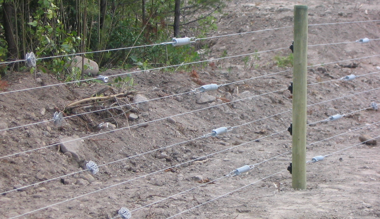 Y la siguiente imagen muestra una buena instalación pero inefectiva debido a las plantas que están tocando el alambrado y derivando a tierra la alta tensión: